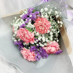 Joyful 5 stalks Carnation with Baby’s breath and Statice. Greenacres reserves the right to replace any item with another of equivalent...